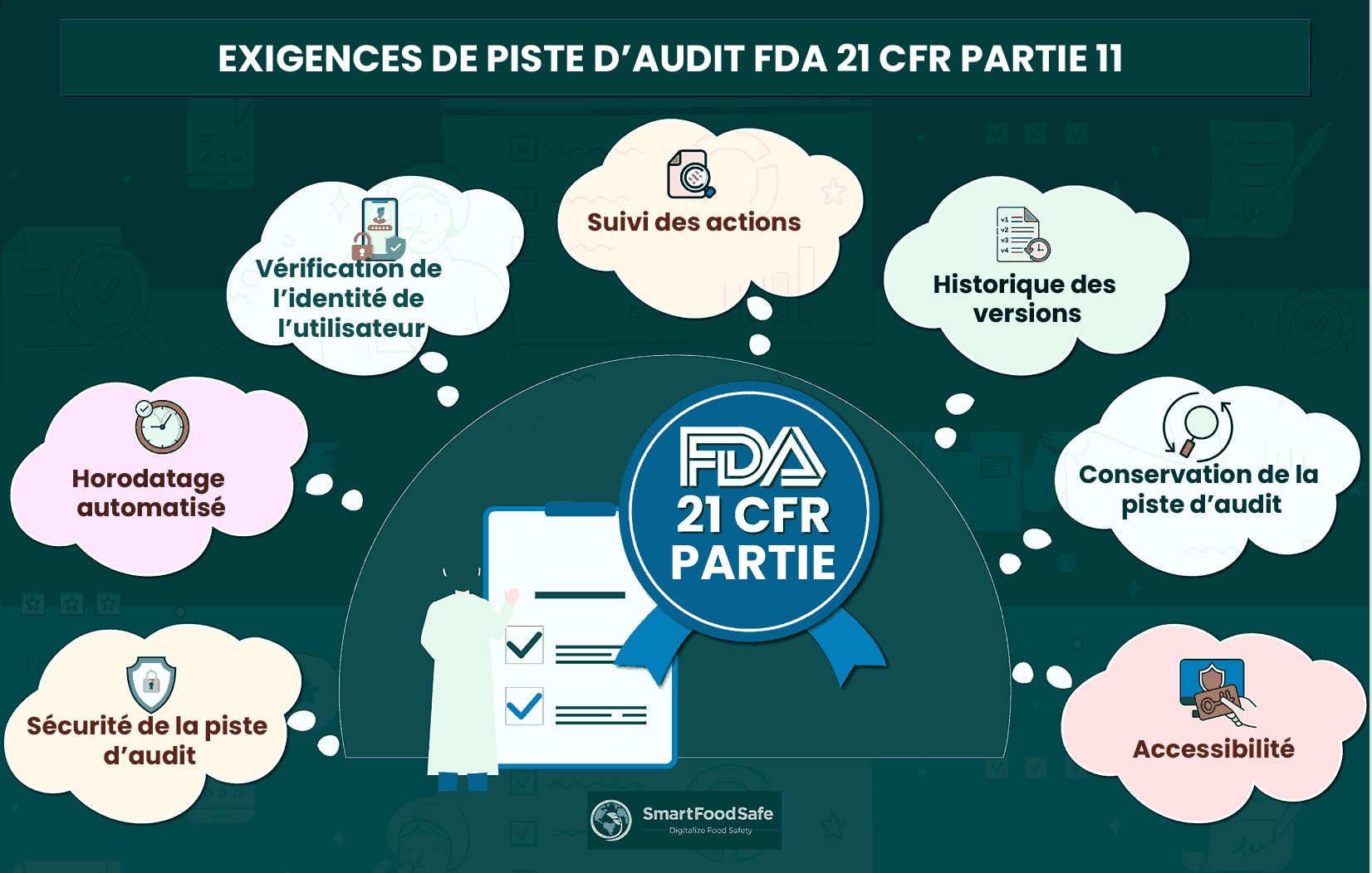 Voici un résumé rapide des exigences spécifiques de piste d'audit selon la 21 CFR Part 11 de la FDA :